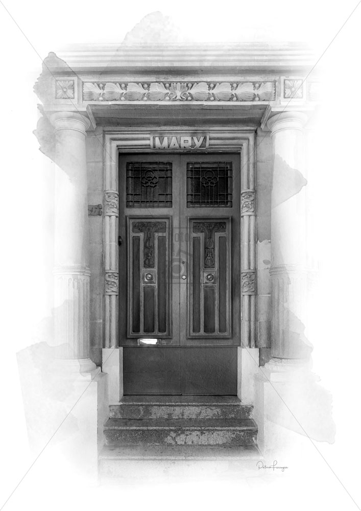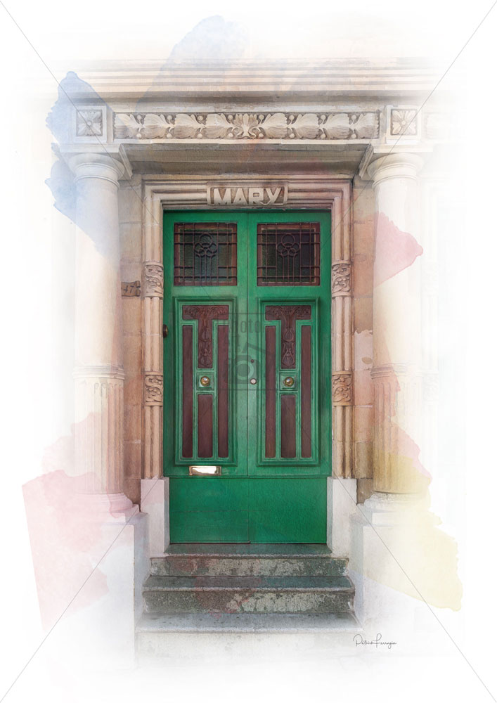 An artistically enhanced photo print depicting the traditional Green Maltese town door (Mary) in Art Deco Art Nouveau style in Sliema.